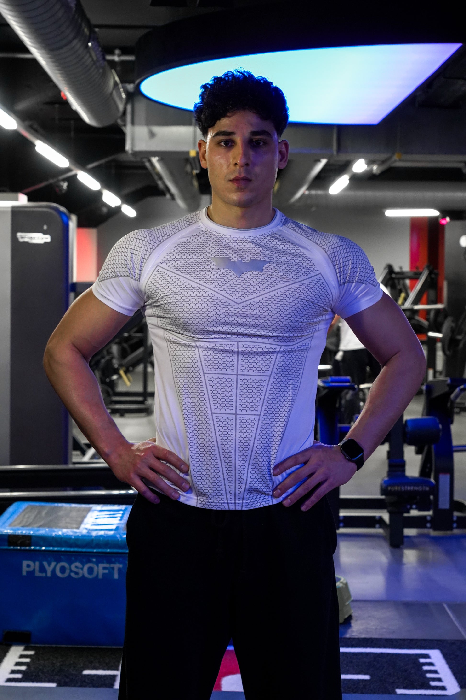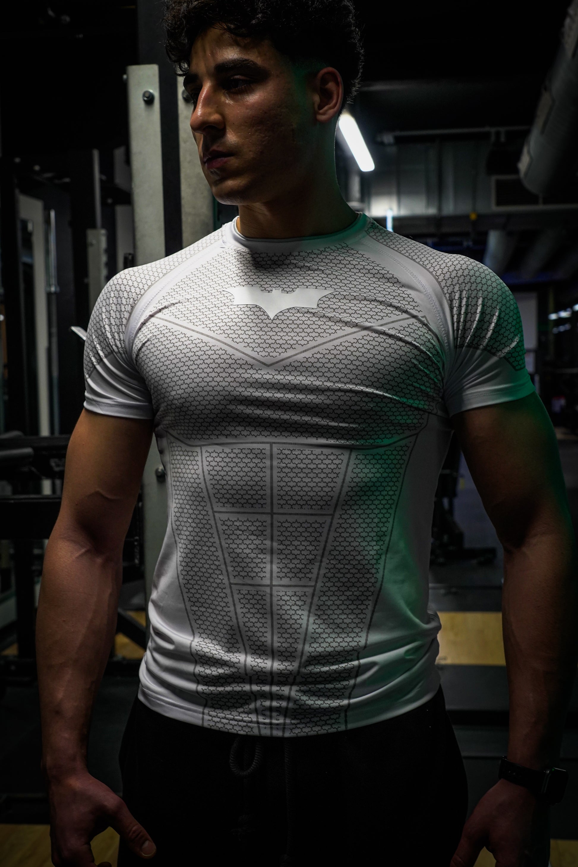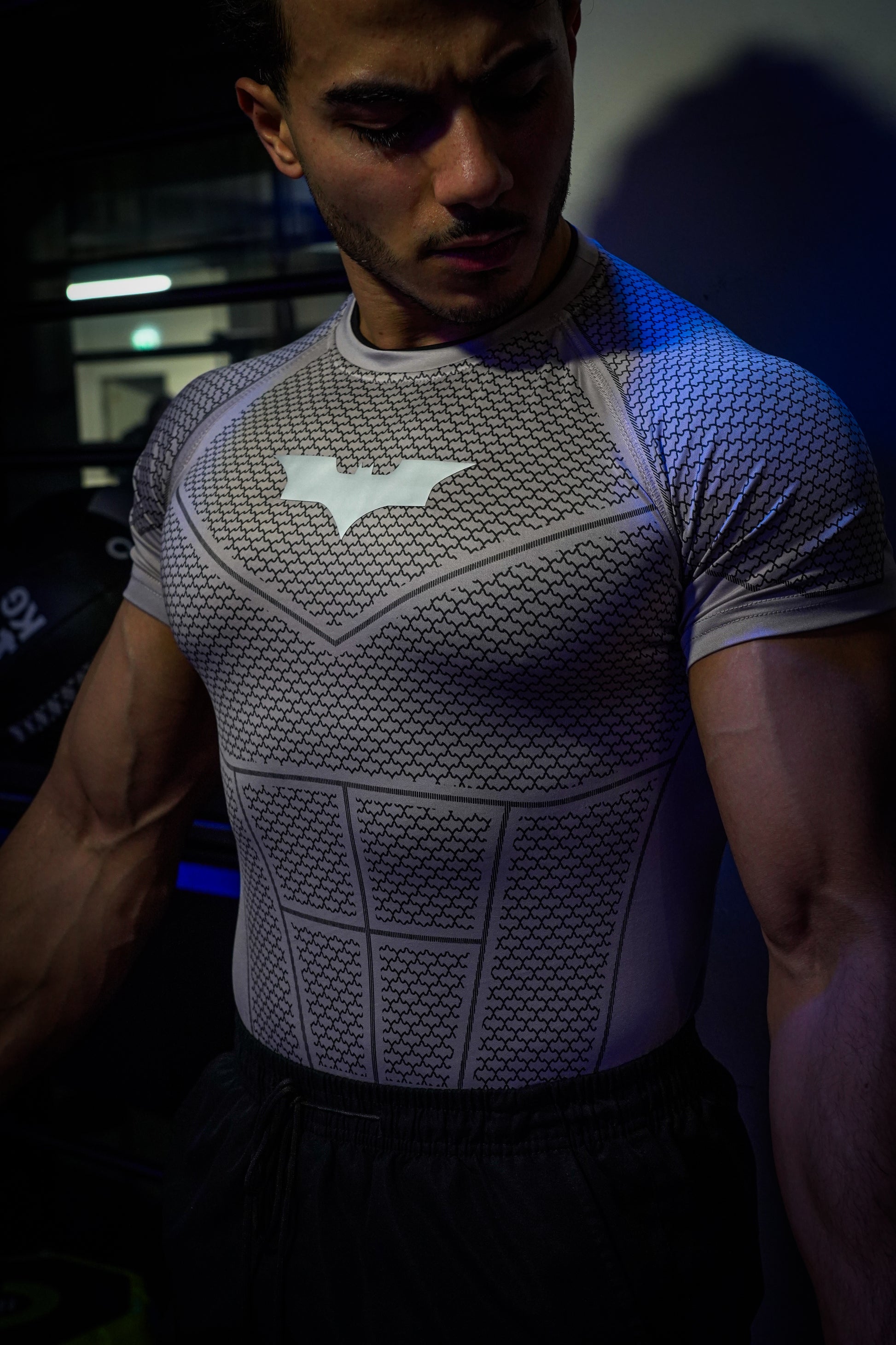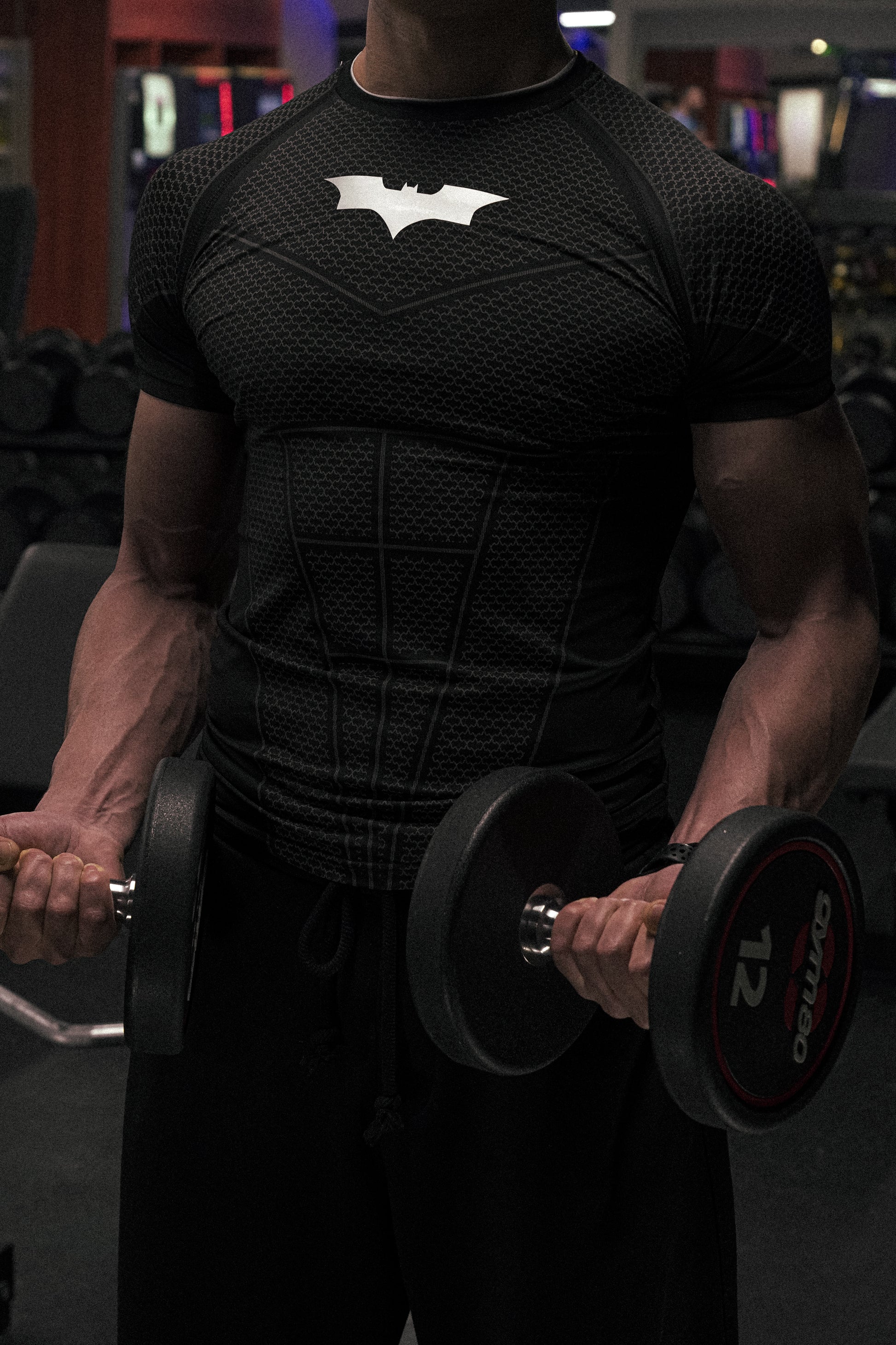 This compression tee hugs close with a structured, armored-style pattern. Itβs lightweight, supportive, and moves with you. Whether youβre hitting chest day or just trying to look mysterious at the gym. The crisp Batman emblem seals the deal being sleek and tough.